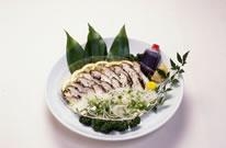 土佐珍味、うつぼのタタキ。土佐の荒波に育った礒の王者うつぼをグルメ仕立てご家庭に、絶妙の食感がご好評を頂いています。
